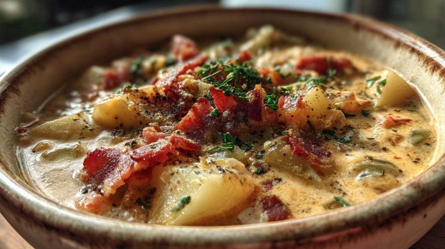 - Serve hot, garnished with reserved bacon and your favorite toppings.