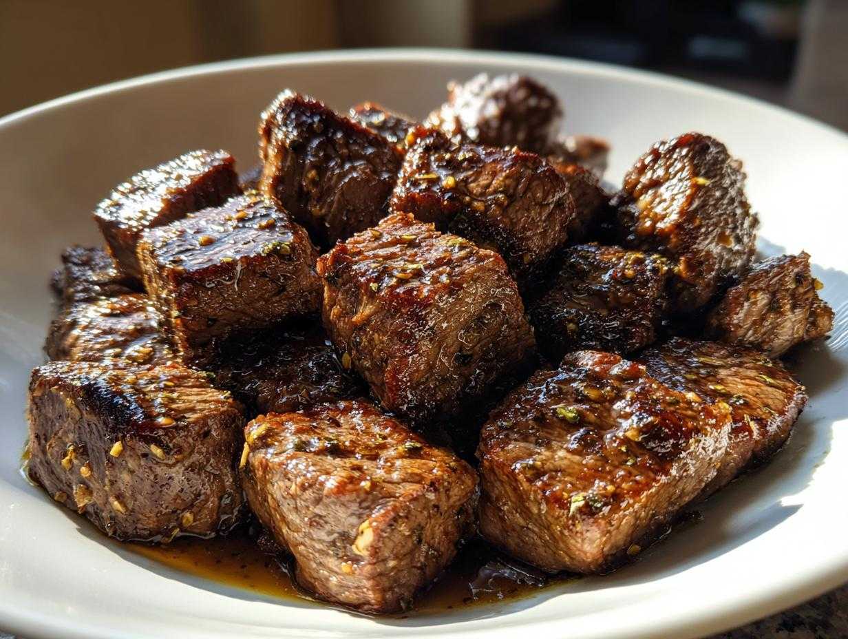- Once cooked, stir everything gently to create a light sauce coating the steak bites.