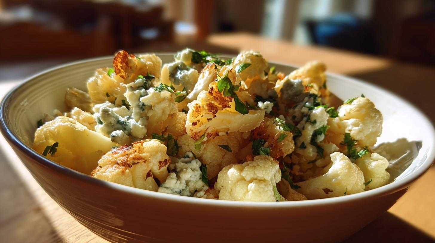 A flavorful salad combining roasted potatoes and cauliflower with tangy blue cheese and a light dressing.